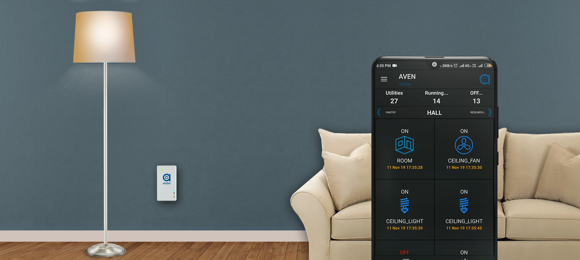 Aven App allows you to adjust your lights,fan's speeds and more in multiple rooms,creating comfortable envioronments and just the right ambiance with a tap on yor smart home.